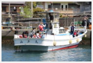 美波町の自然を漁船に乗って体験できる「うみがめマリンクルーズ」からスタート!2隻に分かれて乗船し、波しぶきが受けながら、千羽海崖やえびす洞などのスポットを巡りました。美波町のご当地キャラクターである「かめたろうさん」も一緒に乗船しガイドをしてもらいました。