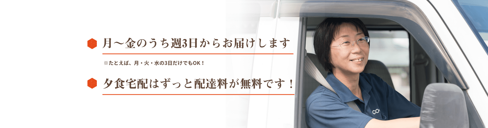 離れて暮らす親が心配でしたが、夕食宅配の緊急連絡先に登録したおかげで、前の日のお弁当が手付かずだったり、異変があったときには連絡がもらえるのでとても安心です。